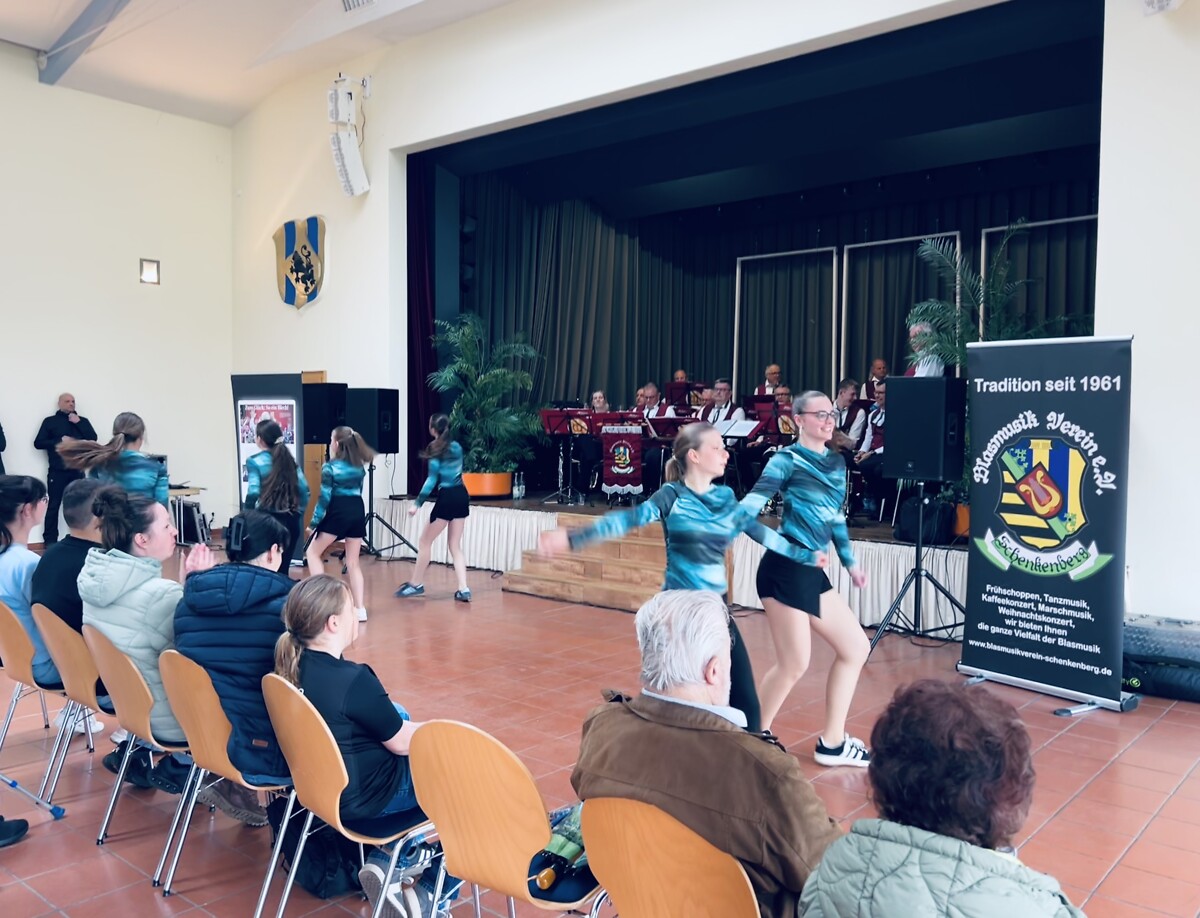 Der Auftritt des Blasmusikverein Schenkenberg e.V. unter der musikalischen Leitung von Herrn Röhricht, brachte dann Stimmung unter die Anwesenden im Saal. Mit einem besonderen Applaus wurde nach einer Stunde der Blasmusikverein in die Pause geschickt und die Tänzerinnen vom Zwochauer Karnevalsverein begrüßt. Mit starkem Hip-Hop-Beat und flotten Tanzeinlagen brachten sie Sonnenschein in die Festveranstaltung. Das kam gut an und man konnte manch mitwippende Mitglieder und Mitarbeiter beobachten.
