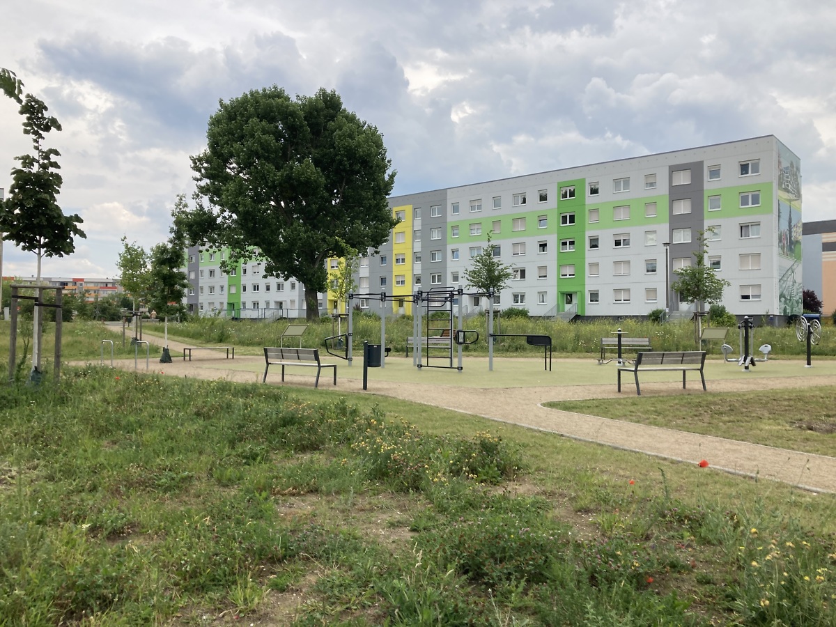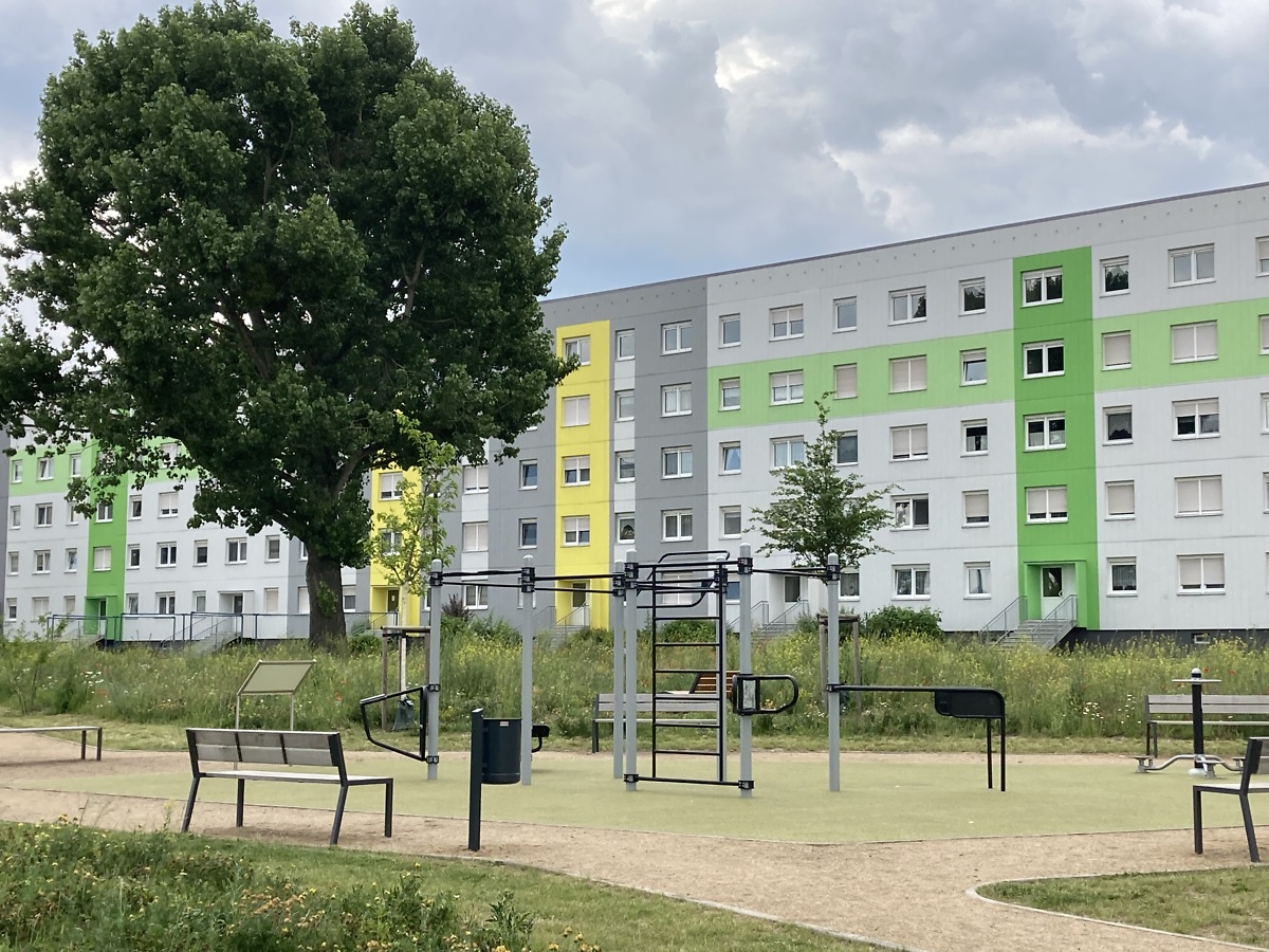 Die Wohnungsbaugenossenschaft Aufbau eG (WBG) ist an dem Projekt beteiligt. Sie hat Genossenschaftsflächen zur Verfügung gestellt, außerdem grenzen einige ihrer Wohngebäude an den Grünzug. „Wir sehen eine Aufwertung dieses Gebietes für unsere Bewohner und Mitglieder“, kommentiert WBG-Vorstand Martin Schulz. Neben dem kostenfreien Sportangebot sei so auch ein erheblicher Durchzugs- und Abkühleffekt in der warmen Jahreszeit geschaffen worden.