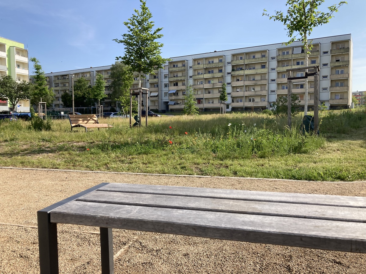Ursprünglich standen auf dem neuen Tummelplatz der Generationen Plattenbauten. Die damalige relativ enge Bebauung brachte in Hitzesommern Nachteile mit sich.