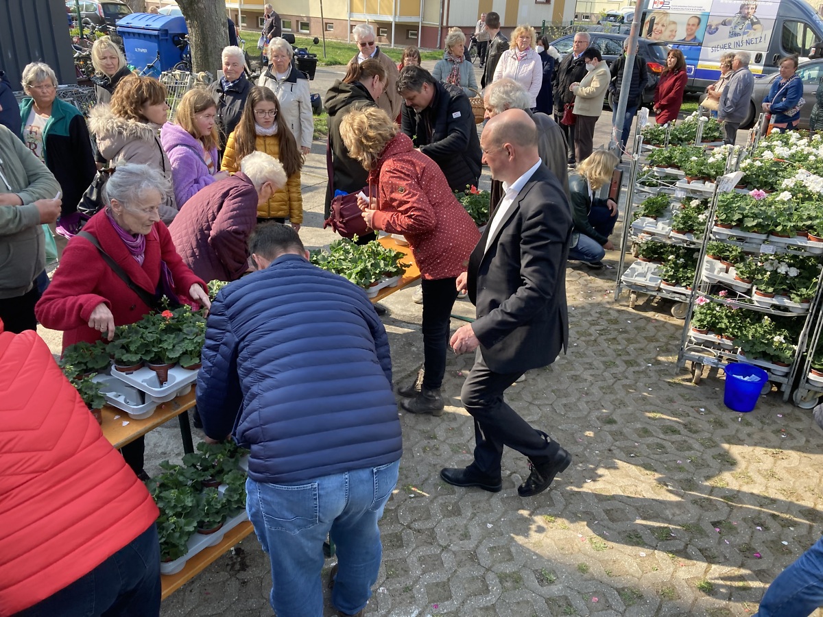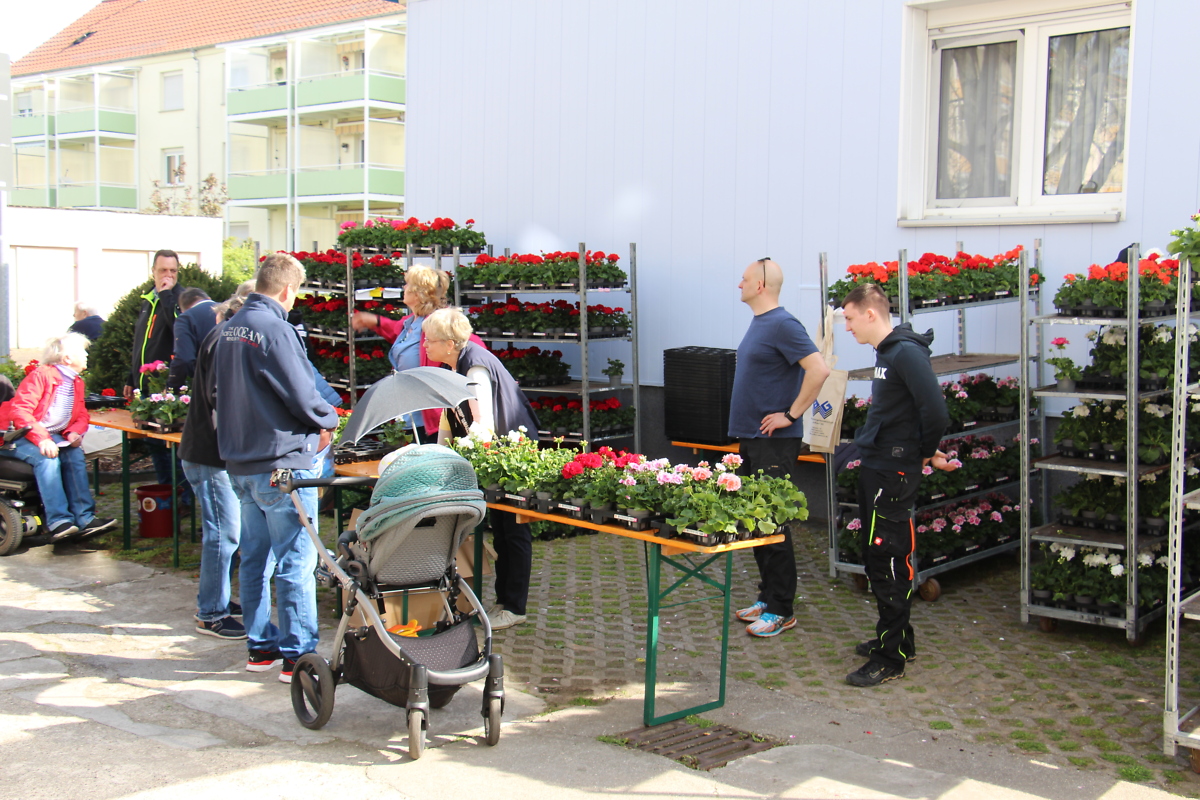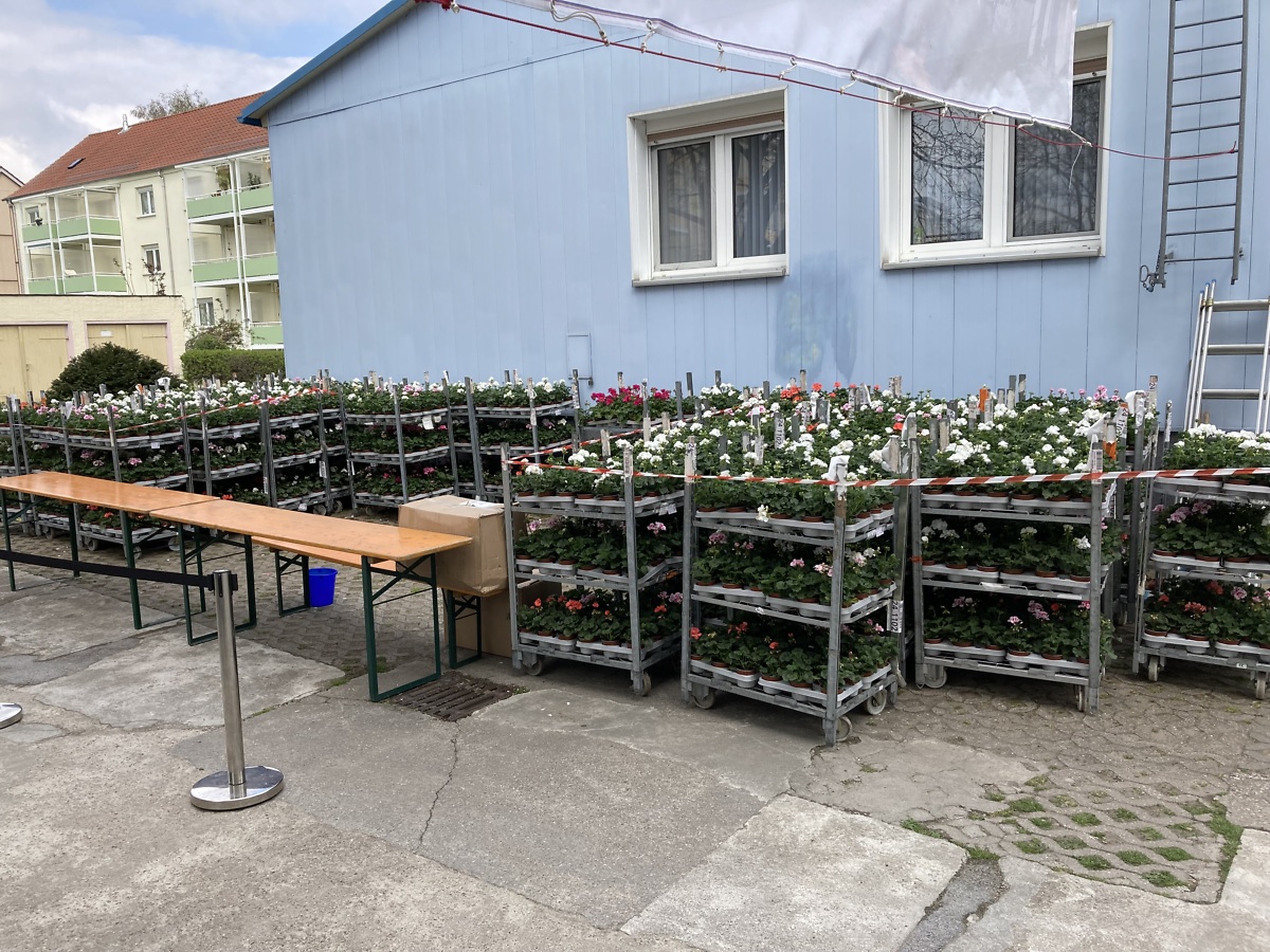 Ein weiterer Dank geht an unsere Kollegen Arno und Thomas, die für die Verteilung der Geranien in Rackwitz sorgten, sowie an die Gebäudedienste Landsberg GmbH, die uns ihren Transporter zur Verfügung gestellt haben.