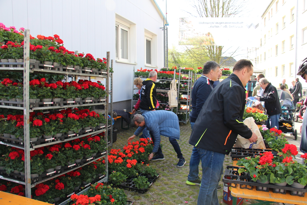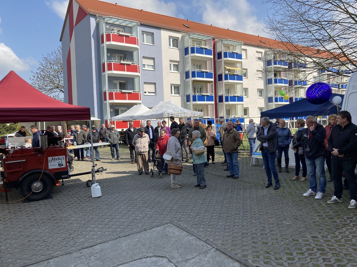 Neben den heiß begehrten Geranien, einer deftigen Versorgung aus Pfanne und Gulaschkanone, gab es sehr viel Gesprächsstoff nach einer solch langen Zeit der Abstinenz. Auch die Gäste u. A. der Landrat von Nordsachsen Herr Kai Emanuel, der Oberbürgermeister der Stadt Delitzsch Dr. Manfred Wilde, die Direktorin der Staatlichen Studienakademie Leipzig Frau Prof. Dr. Brauer, der Geschäftsführer der Stadtwerke Delitzsch Dr. Greb, der Geschäftsführer der Delitzscher Wohnungsgesellschaft André Planer sowie verschiedene Partner der Genossenschaft beteiligten sich aktiv an diesem Austausch und plauderten in lockerer Runde. Damit auch den jüngsten Bewohnern nicht langweilig wurde, sorgte ein Team des NHV Concordia Delitzsch in dieser Altersgruppe mit kleinen Spielen für reichlich Spaß. Alle anderen Altersgruppen suchten unter anderem das Gespräch mit den Mitarbeitern der WBG oder informierten sich bei dem Team der Firma Matthias Kahlo über die Möglichkeiten eines Badumbaus im bewohnten Zustand. Somit traten die zahlreichen Teilnehmer des Frühlingsmarktes zur späten Nachmittagsstunde zufrieden und gut gelaunt den Nachhauseweg an.