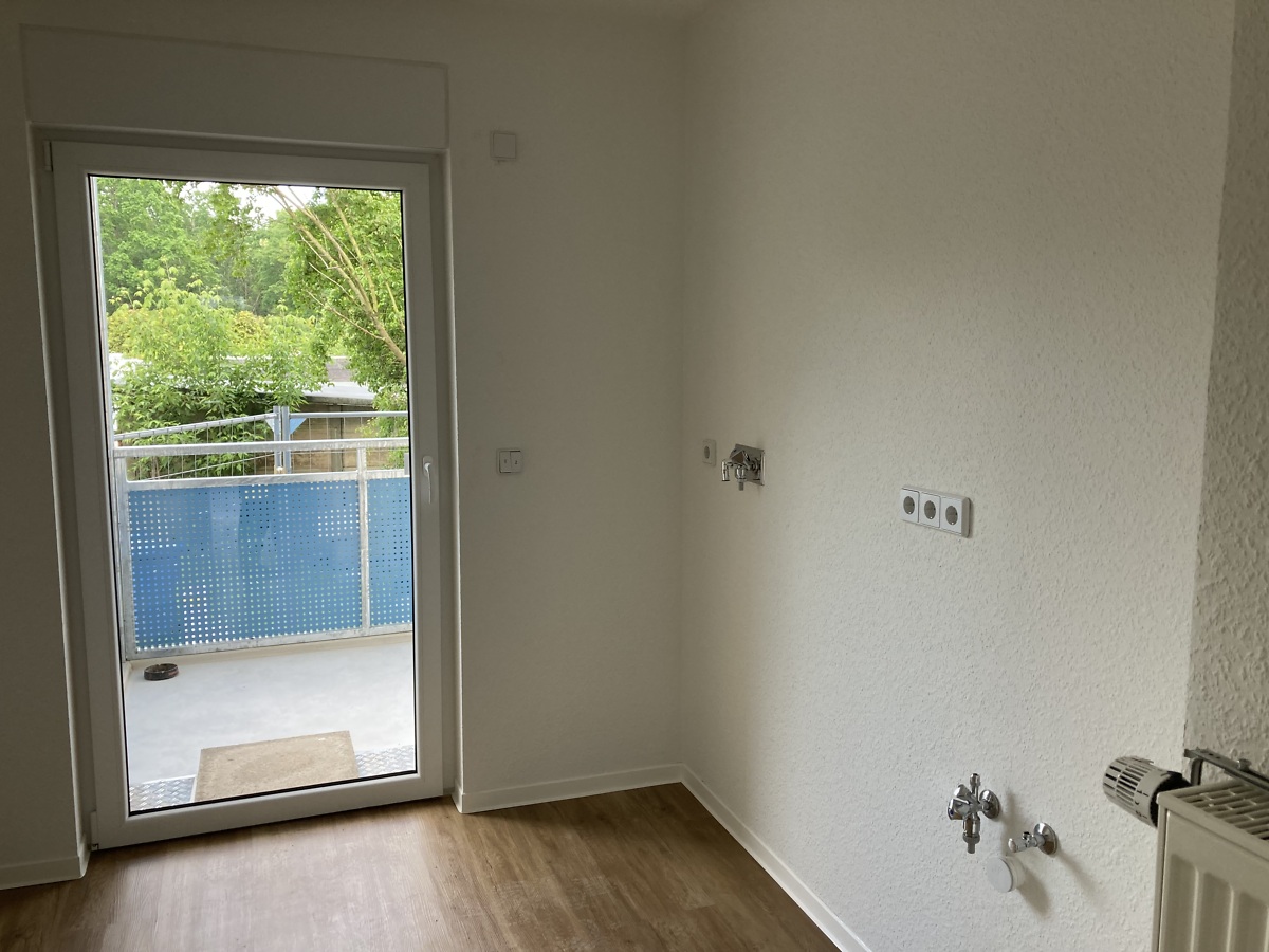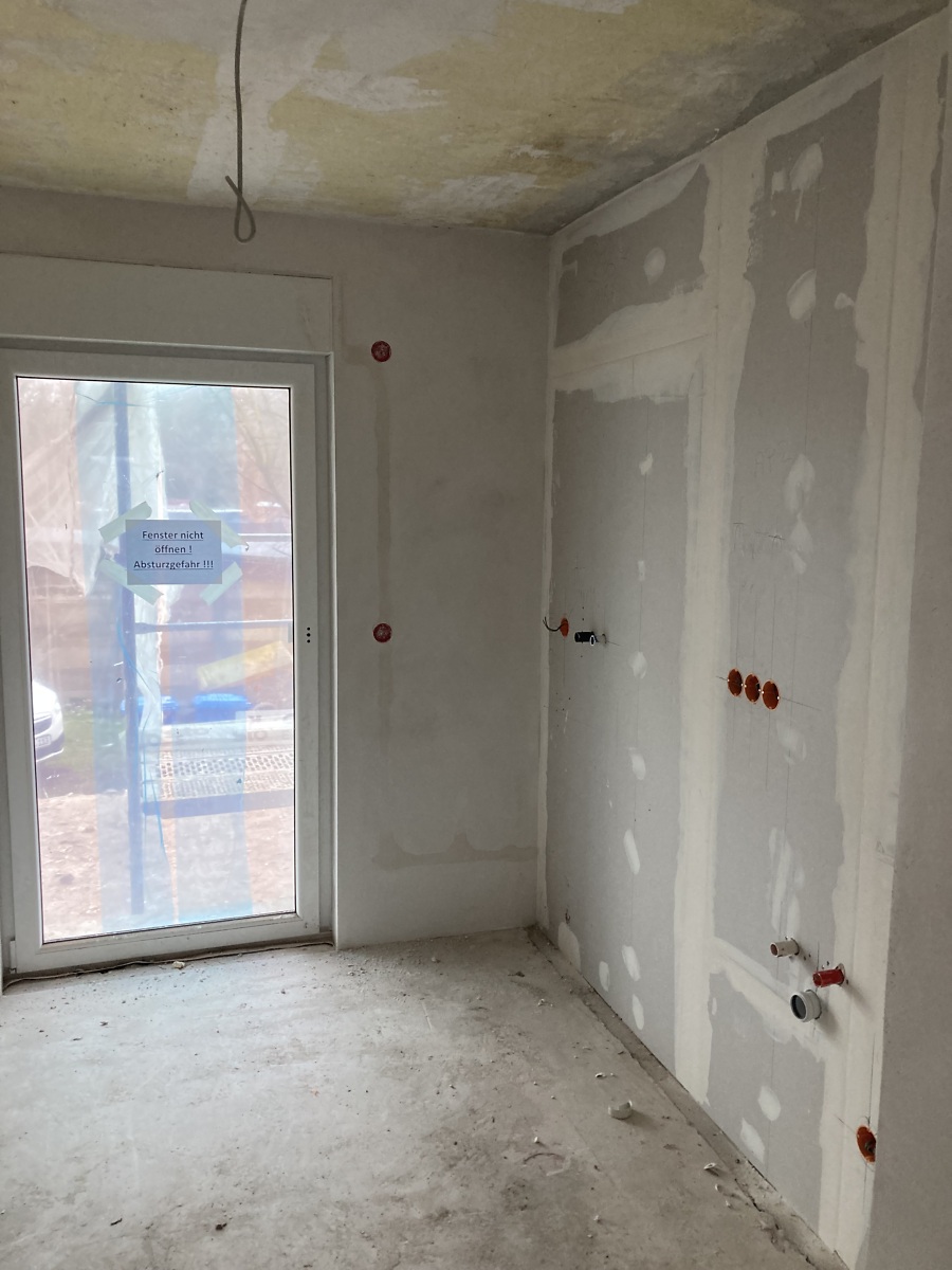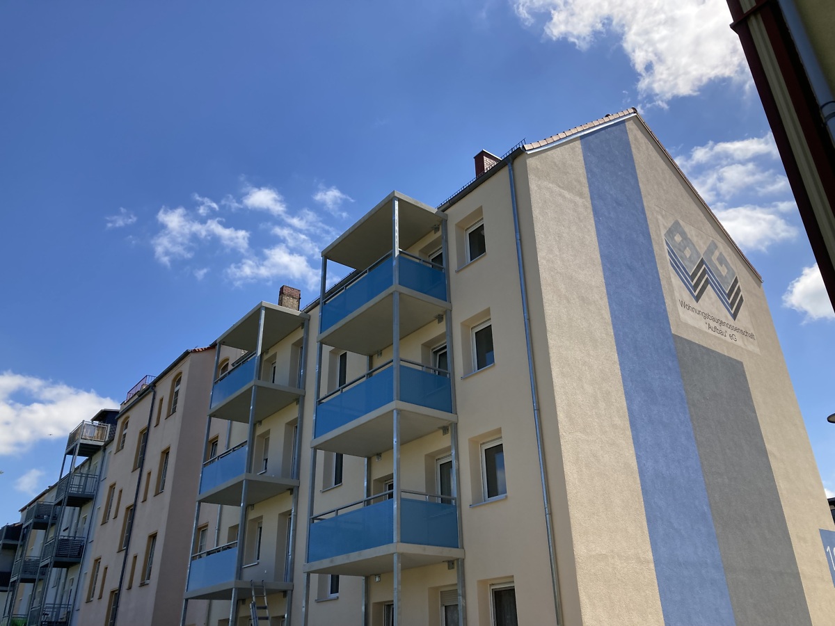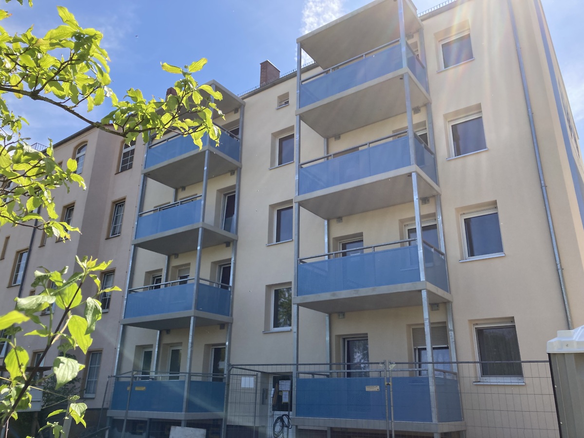 Mittlerweile hat sich innen und außen viel getan. Die Fassade hat eine komplette Wärmedämmung erhalten. Es wurde innen gründlich entkernt und neue Trockenbauwände gestellt, sowie neue Sanitär-, Heizungs- und Elektroleitungen verlegt. Das absolute Highlight, die Balkontüren mit elektrischer Jalousie. Mit dem Anbau von Balkonanlagen verbessern wir die Wohnqualität und bieten den zukünftigen Mitgliedern und Bewohnern einen unverstellten Blick über´s Grüne von Delitzsch Nord.