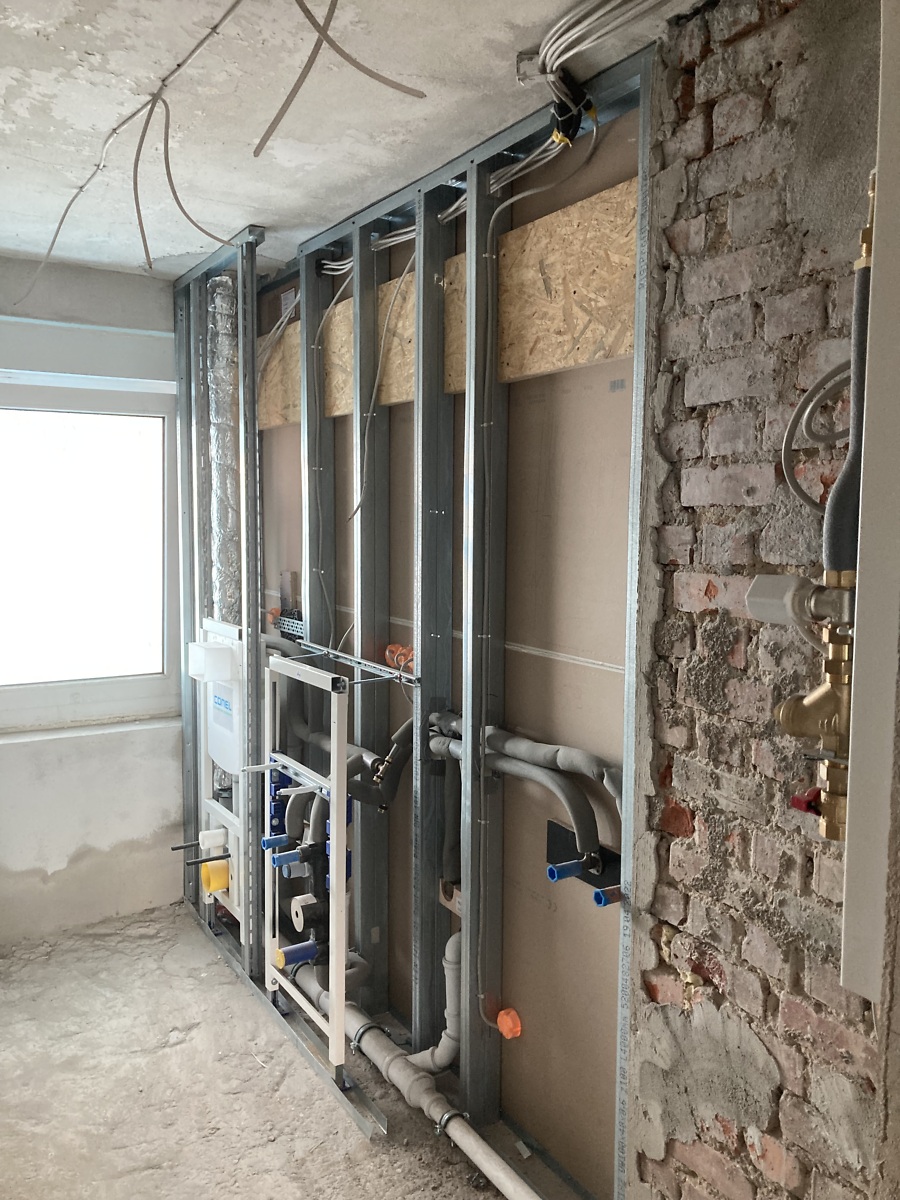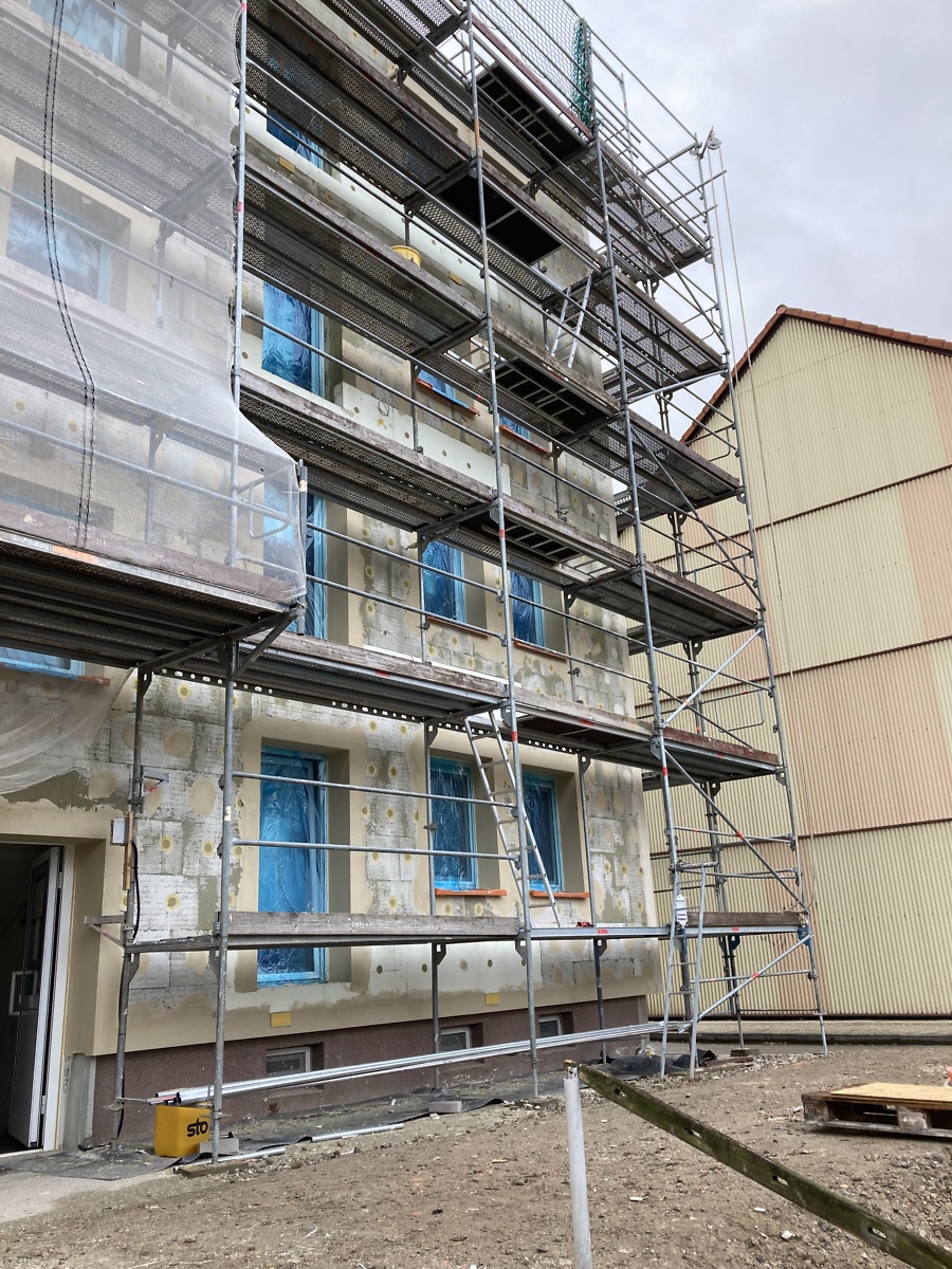 Es herrscht weiter ein geschäftiges Treiben auf der Baustelle. Die Stimmung ist gut und die Anzahl der Restarbeiten überschaubar. Der Maler verhilft dem alten Treppenhaus zu einem neuen Auftritt. Die Restarbeiten am Sockel gehen bei diesem guten Wetter leicht von der Hand. In wenigen Tagen starten die Arbeiten an den Außenanlagen. Die Wohnungen sind komplett und der Zeitplan wird eingehalten.