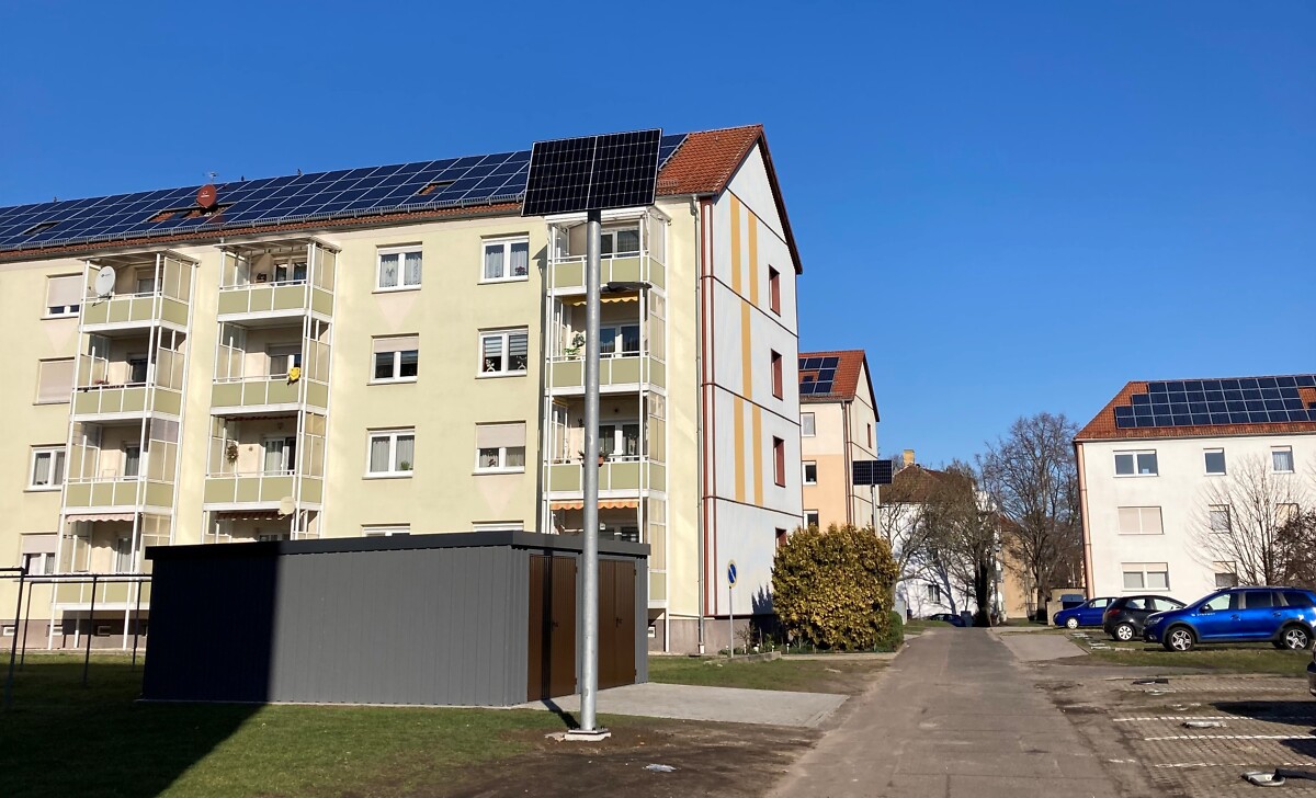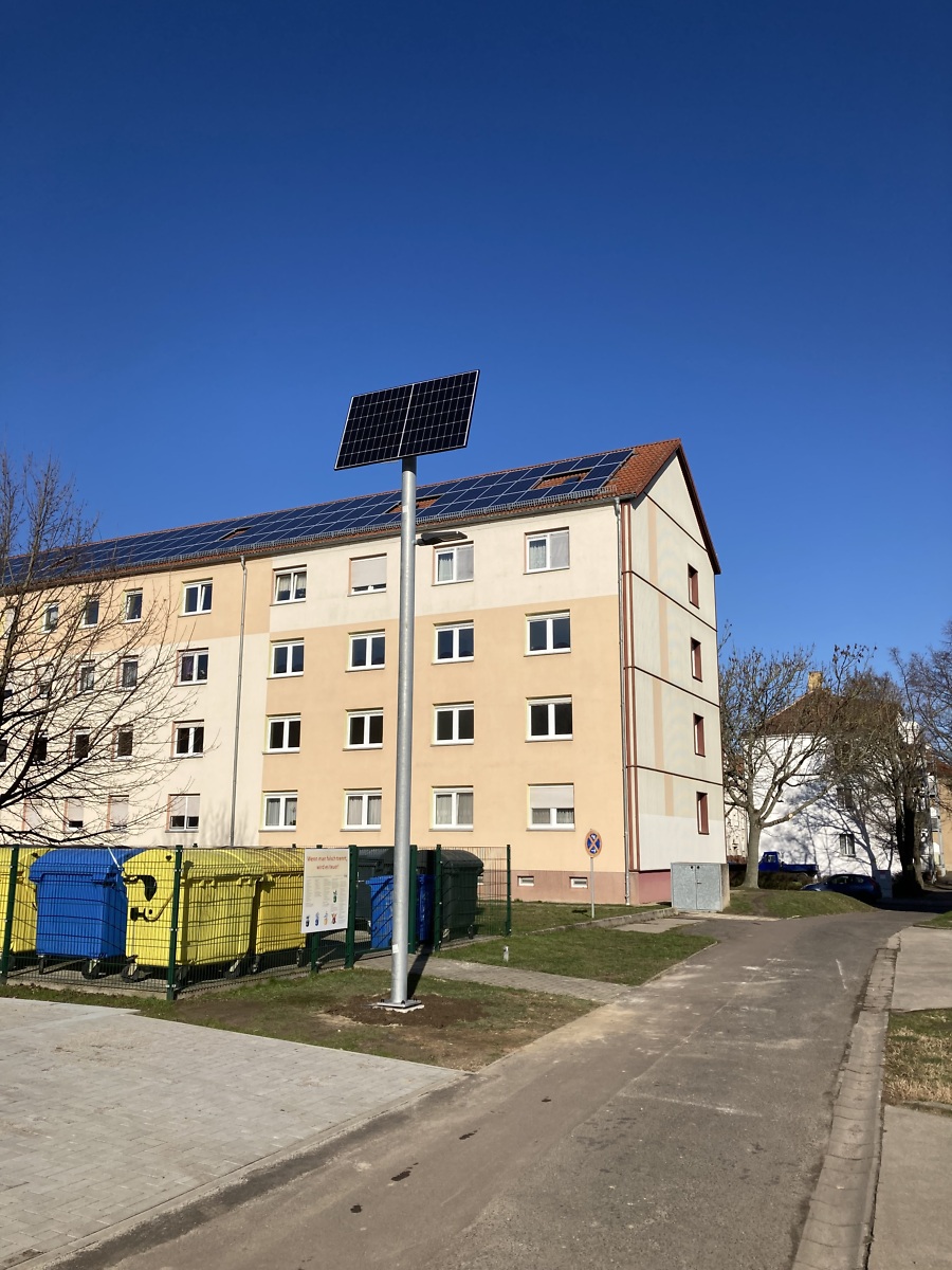 Die für das 2. Halbjahr 2022 geplante und in Angriff genommene Baumaßnahme "Herstellung einer Beleuchtungsanlage und Installation eines Fahrradhauses" zwischen der R.-Luxemburg-Straße und Am-Karl-Marx-Platz steht im März 2023 kurz vor dem Abschluss.