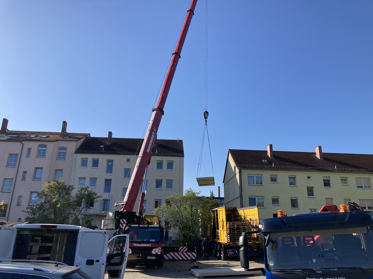 Installation der Fahrradhäuser Am-Karl-Marx-Platz 8-12 und 13-16